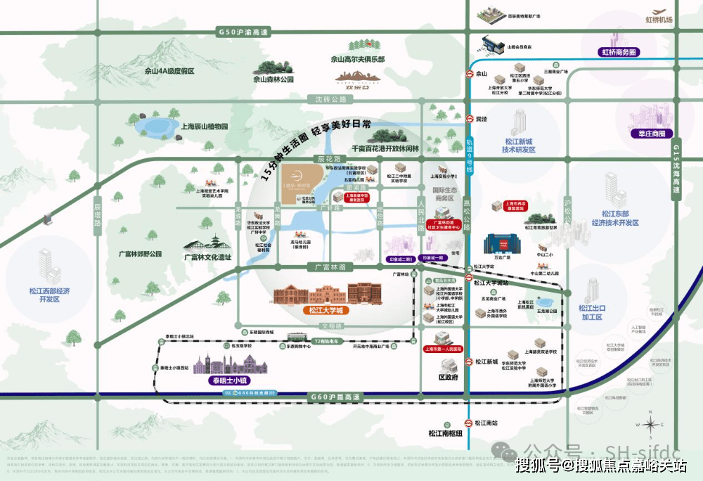 项目西侧约800米处即是广富林文化遗址城市公园,北侧约2公里可达佘山度假区,辰山植物园也在短途车程内。这里既有文化底蕴,又有自然风光,正是家的理想居所。